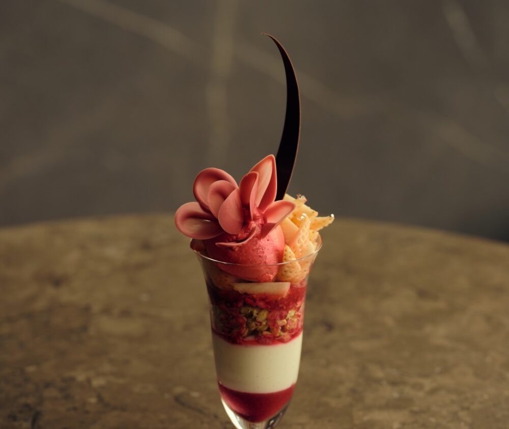 The gentle aroma of Sakura meets the tartness of cherry, the soft sweetness of white bean and the depth of fragrant matcha, creating a harmonious blend of Japanese and European flavours in Janu Patisserie’s springtime exclusive take on its signature ‘Taruni’ cake.