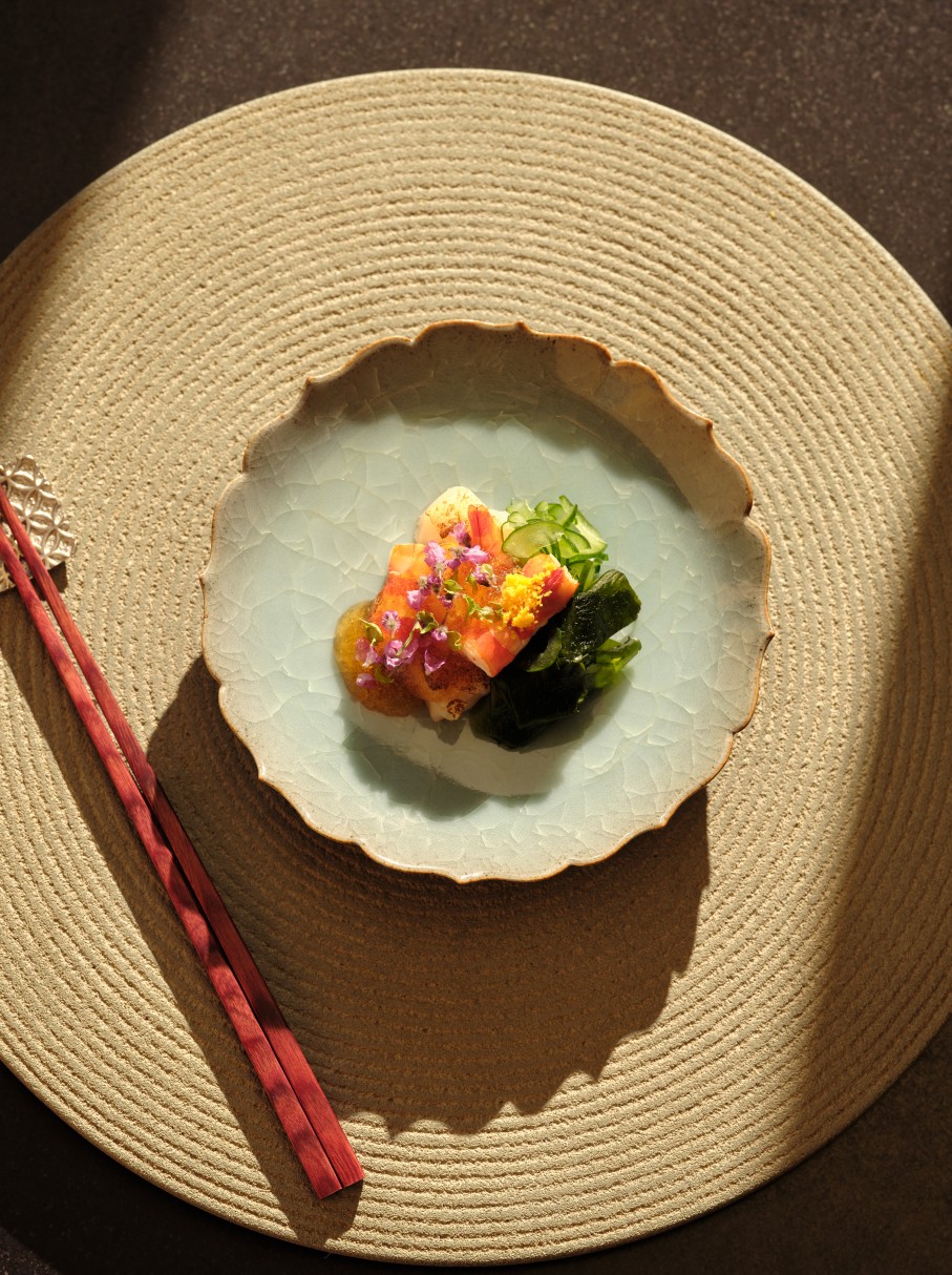 At Iigura’s exclusive six-seat counter, an omakase tasting menu of appetisers, sashimi and nigiri unfolds using methods that date back to the Edo period while just 10 tables are reserved for an a la carte experience. Surrounded by shoji screens and geometric design cues, the distinctly Japanese dining space balances time-honoured tradition with a contemporary urban feel.