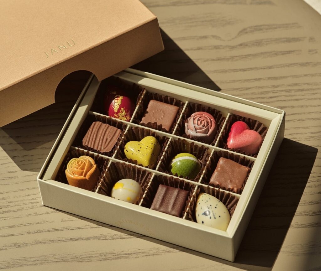 Taste the unique flavours of up to 12 exclusive chocolate varieties in a four- or 12-piece assortment box. Among the most beloved are rose, sake, vegan banana and 70% cacao, all made with the finest ingredients.