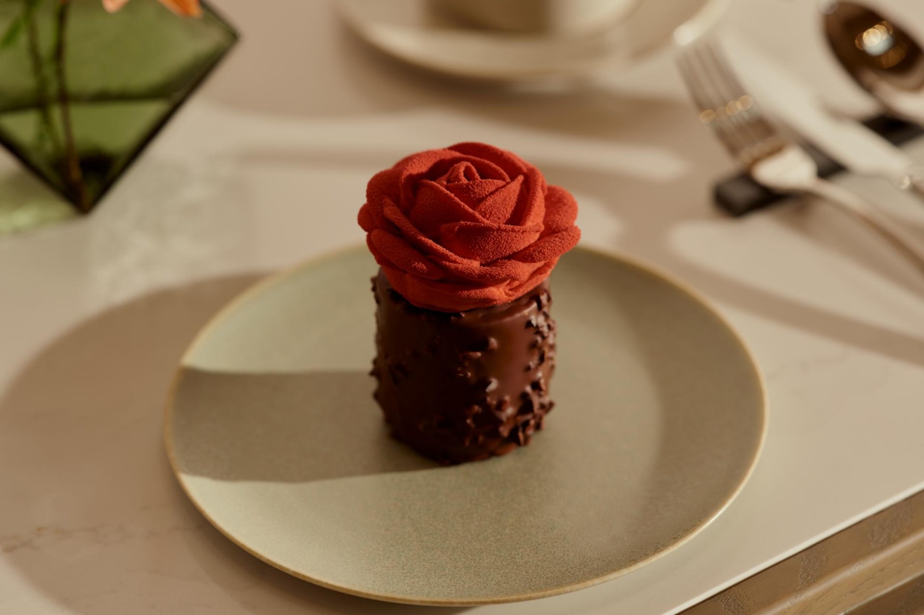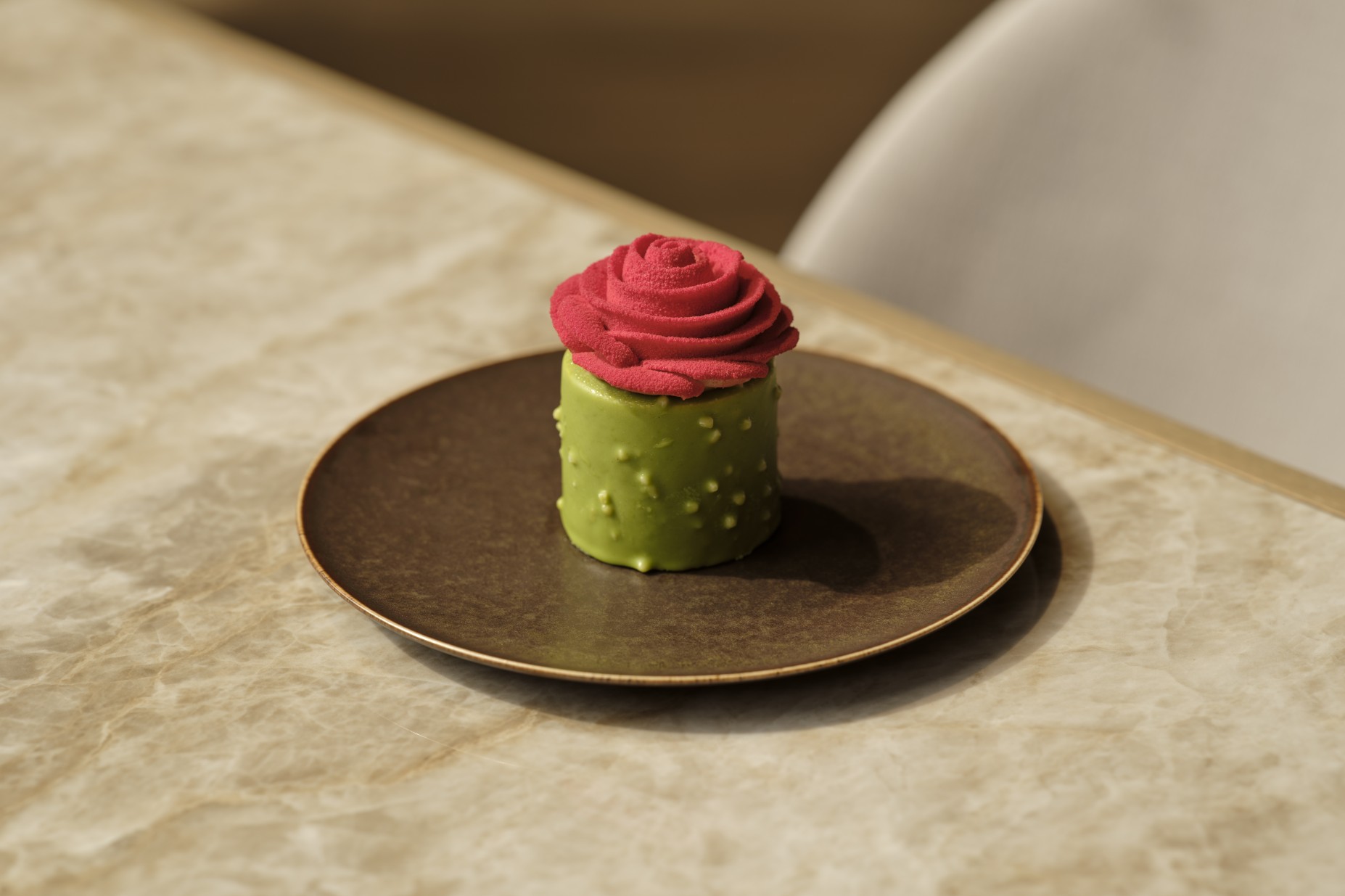 Our signature cake, Taruni, takes its name from the Sanskrit word for ‘rose’. Each of its hand-shaped petals is placed atop layers of delicately baked biscuit, fruit gelée, mousse and cream, creating a balanced flavour that unfolds with every bite.